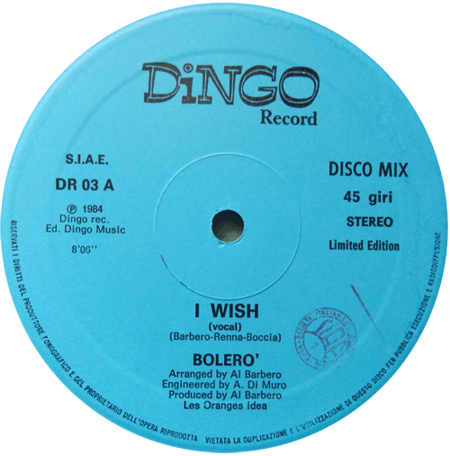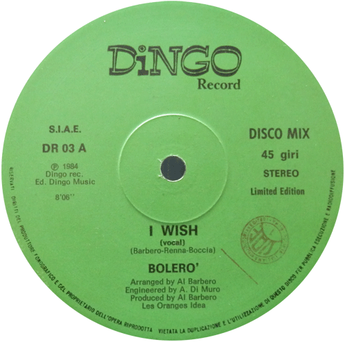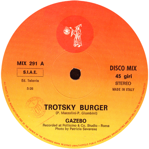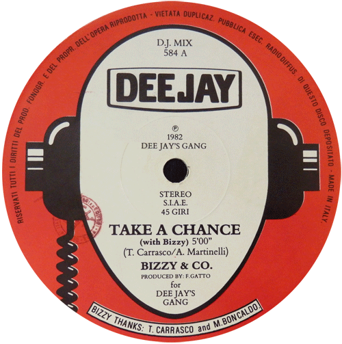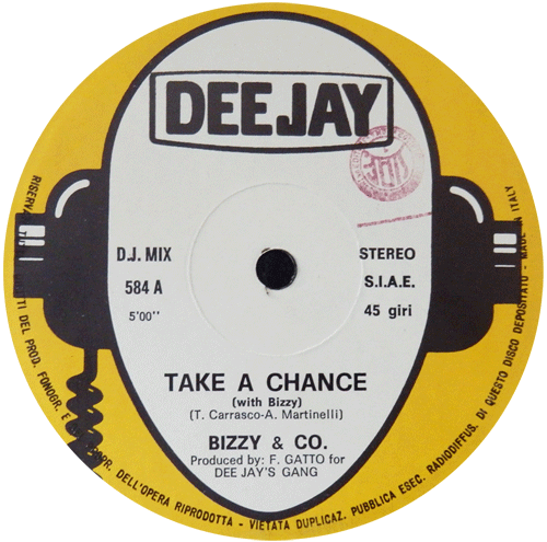 Labels Same record different colour labels Bizzy & Co. – Take A Chance Martinelli – Cenerentola Gazebo – Trotsky Burger Bolero – I Wish